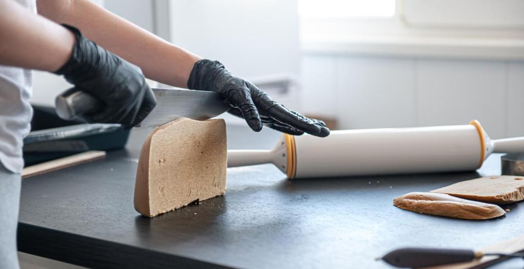 Ein mildes Essigwasserbad löst alltägliche Verschmutzungen, anschließend pflegt ein Hauch Olivenöl die Oberfläche. Weniger ist mehr: dünn auftragen, gut auspolieren. So bleiben Haptik, Duft und die schützende Ölschicht ausgewogen und natürlich.
